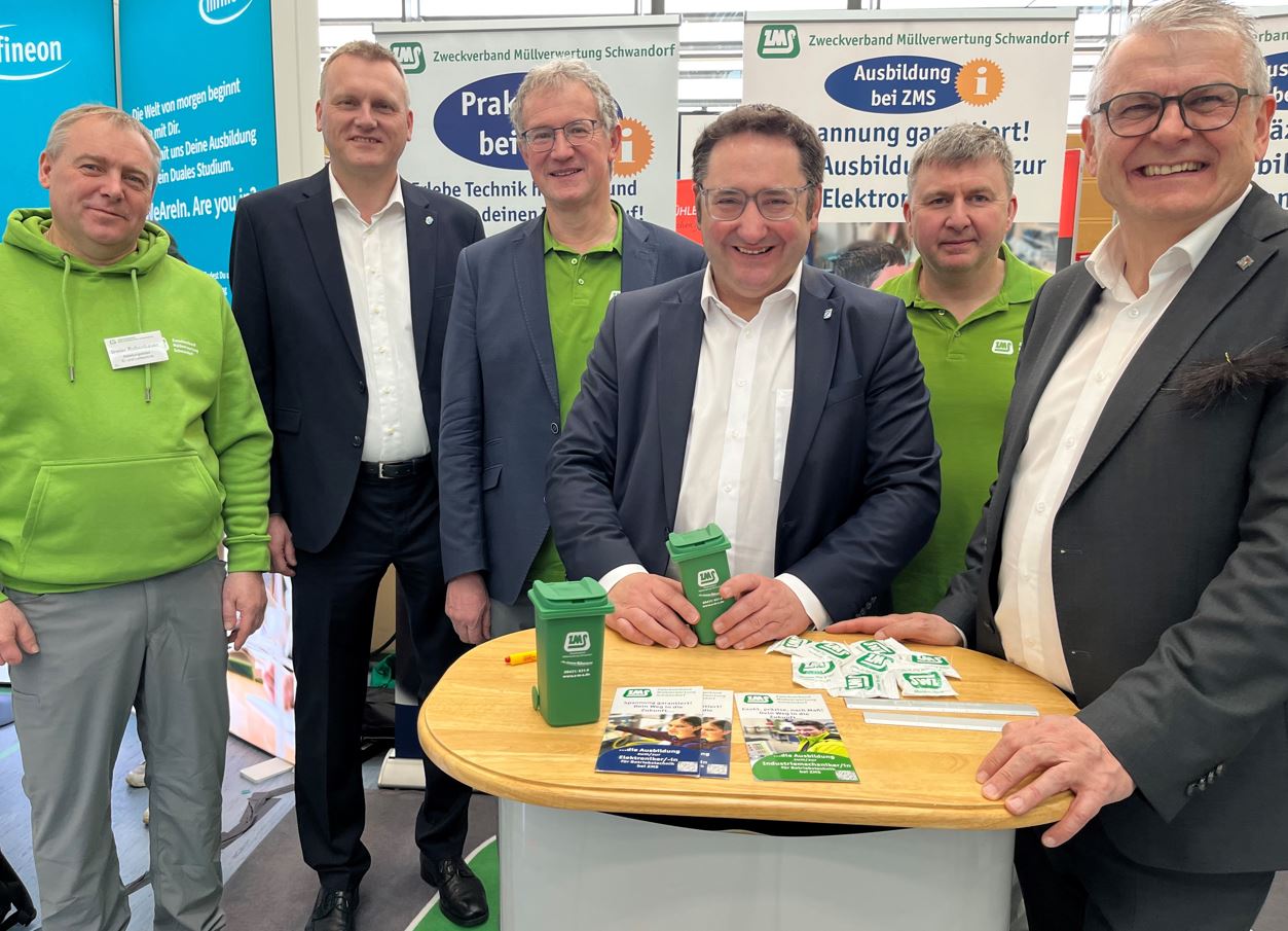 Am 1. und 2. März 2026 präsentierte sich der Zweckverband Müllverwertung Schwandorf (ZMS) mit einem Messestand auf der Bildungsmesse des Landkreises Schwandorf in der Stadthalle Maxhütte-Haidhof. Zahlreiche Schülerinnen und Schüler und deren Eltern nutzten die Gelegenheit, sich vor Ort über Praktikums- und Ausbildungsmöglichkeiten zu informieren und bekamen dabei spannende Einblicke in die Welt moderner Abfallverwertung und Energietechnik.